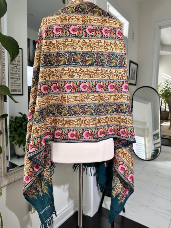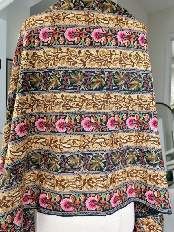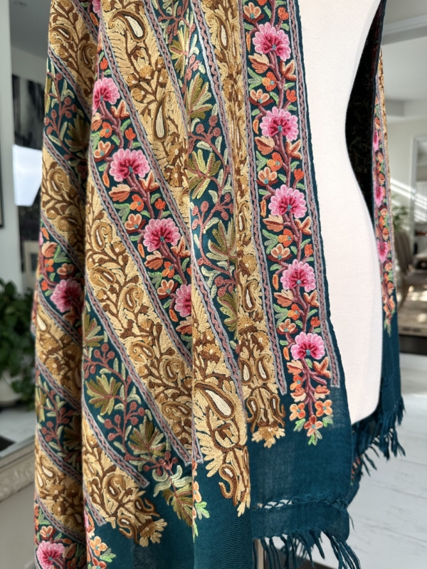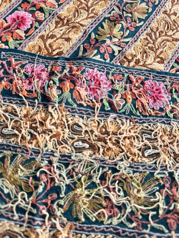 Fabric: The base fabric can be wool or pashmina, making the embroidery versatile.