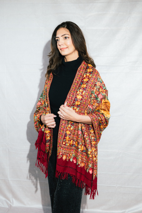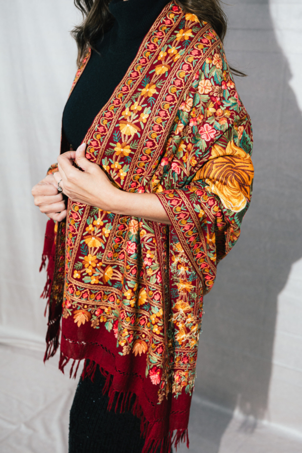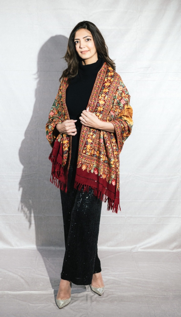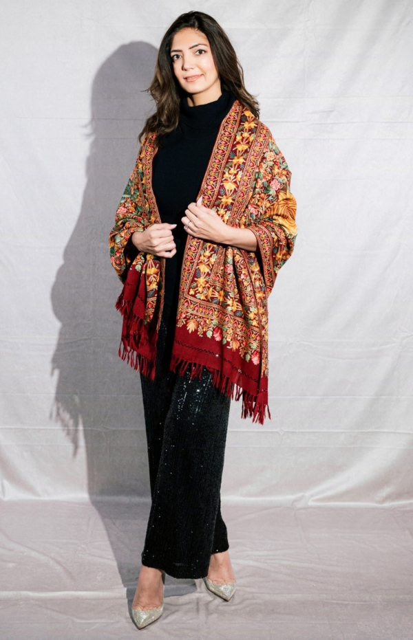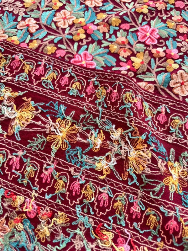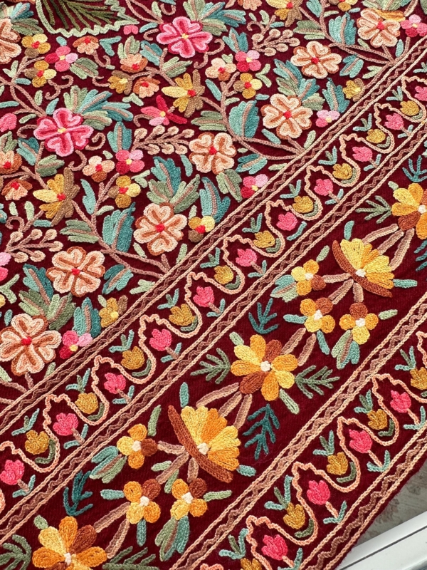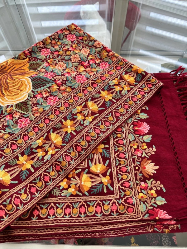 Fabric: The base fabric can be wool or pashmina, making the embroidery versatile.