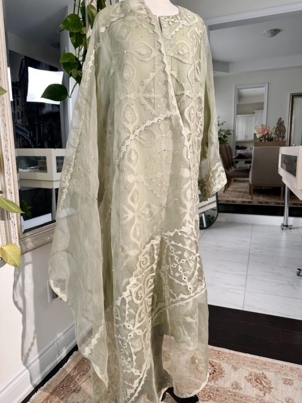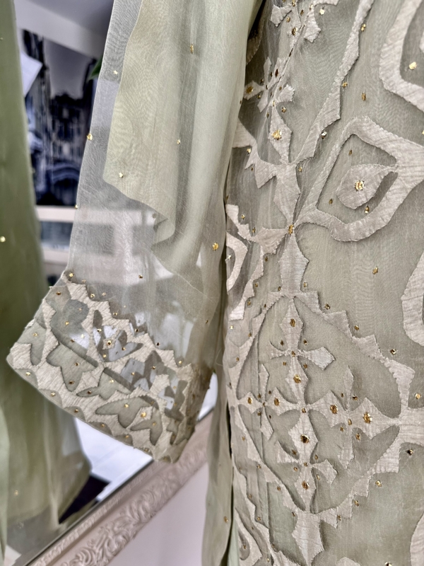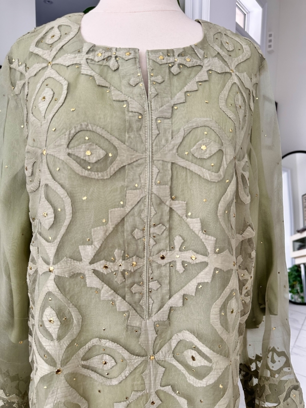 - Dry clean only to maintain the fabric’s delicacy and preserve the handwork.