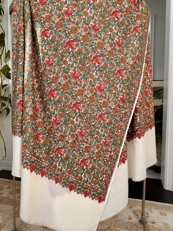 Perfect for both festive gatherings and everyday luxury, this Kashmiri Jamma Shawl is not just an accessory but a work of art that carries the legacy of skilled artisans. Wrap yourself in its elegance and let the heritage of Kashmir embrace you.
