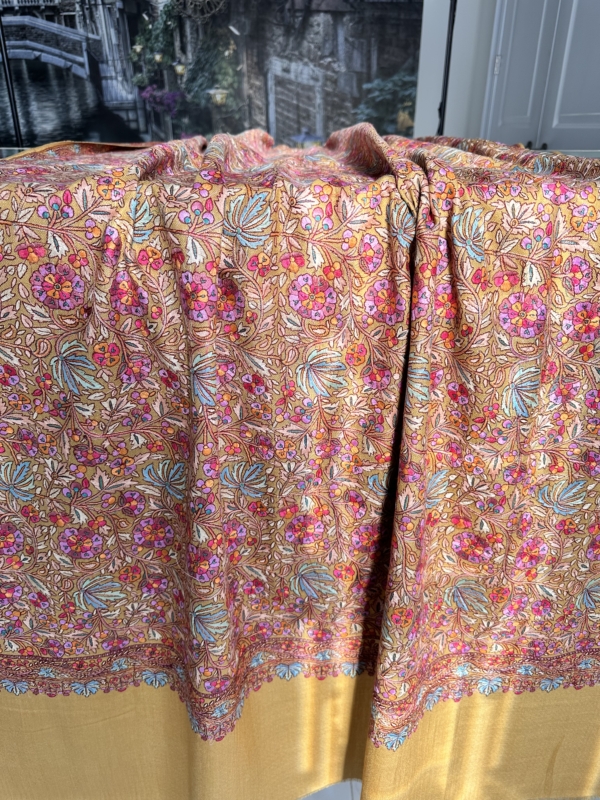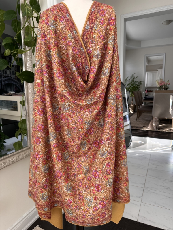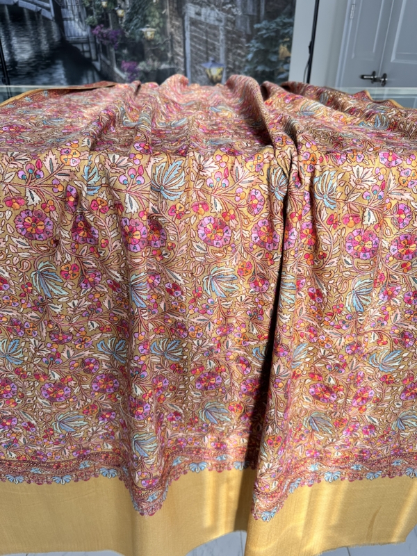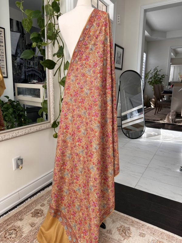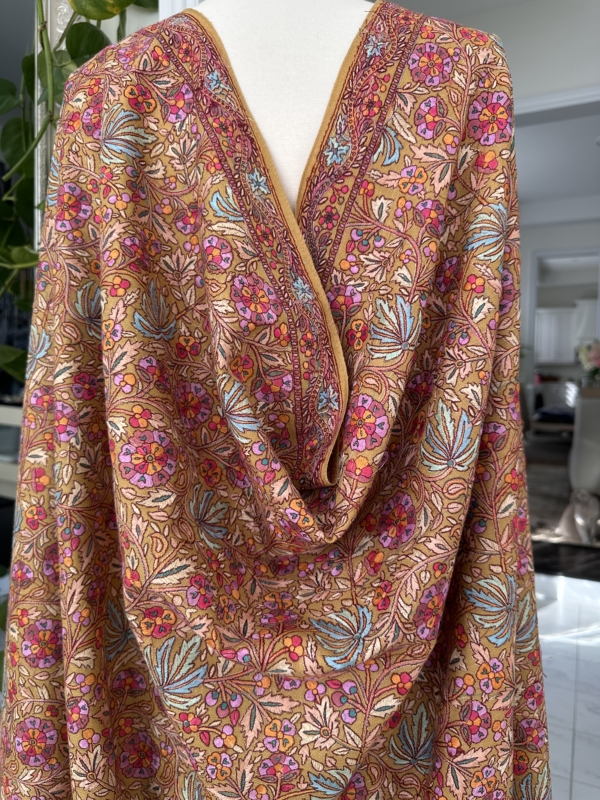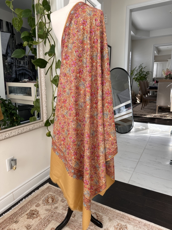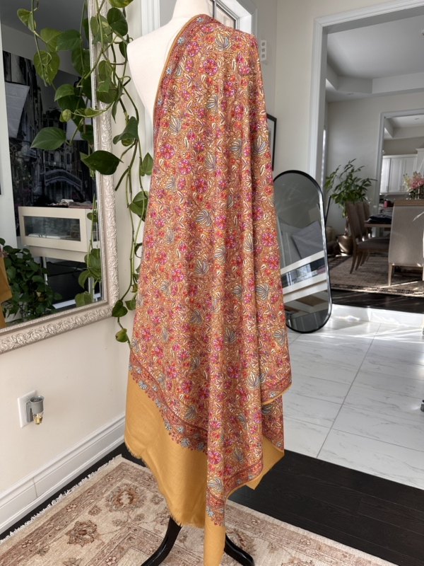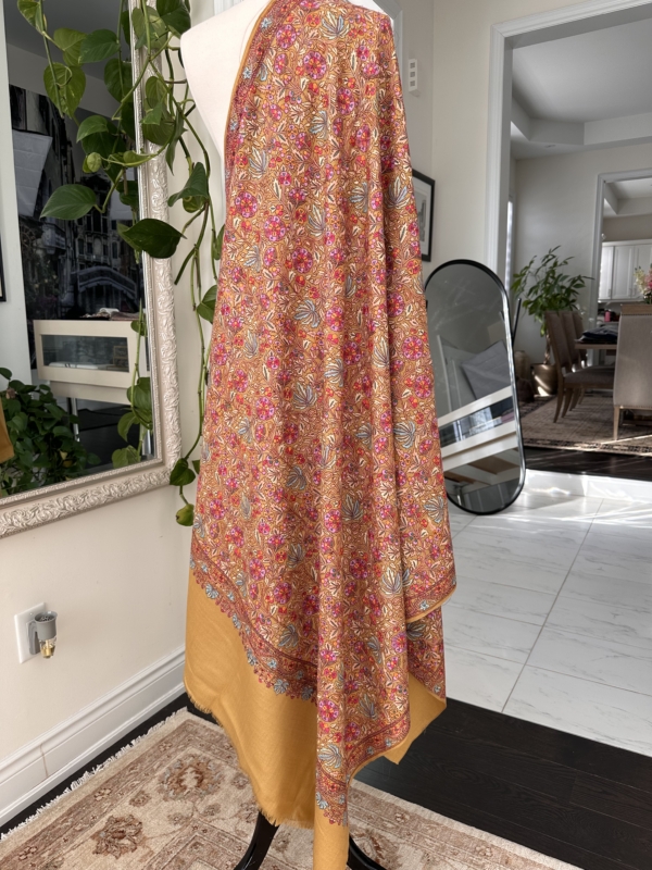 Crafted from the finest Pashmina and wool blend, the shawl exudes warmth, softness, and sophistication. Rich floral patterns, paisley designs, and vibrant hues intertwine to create a breathtaking visual appeal, making this shawl a statement piece for any occasion.
