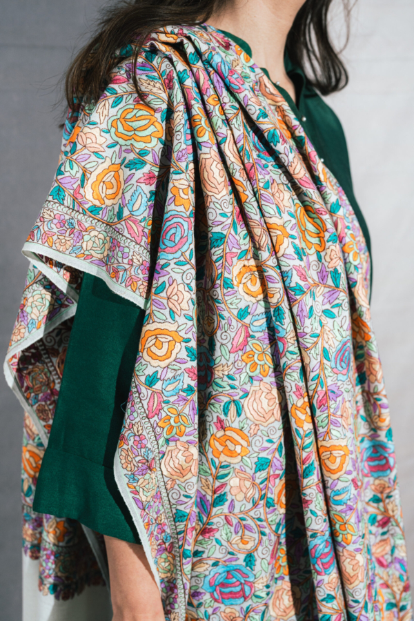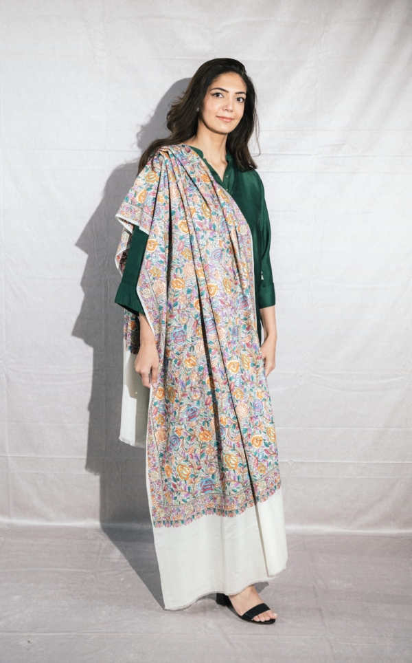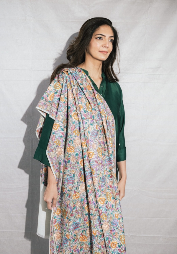 Crafted from the finest Pashmina and wool blend, the shawl exudes warmth, softness, and sophistication. Rich floral patterns, paisley designs, and vibrant hues intertwine to create a breathtaking visual appeal, making this shawl a statement piece for any occasion.