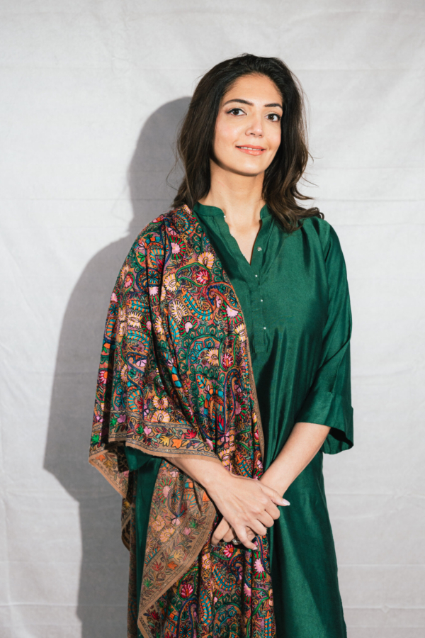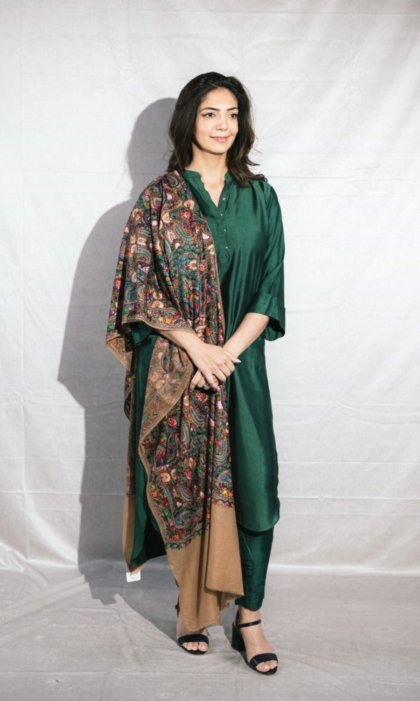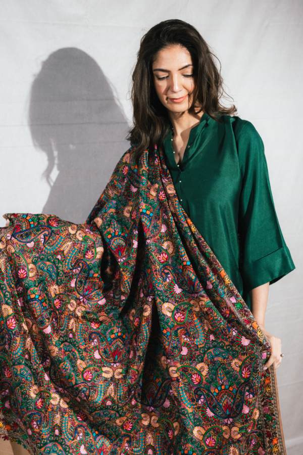 Perfect for both festive gatherings and everyday luxury, this Kashmiri Jamma Shawl is not just an accessory but a work of art that carries the legacy of skilled artisans. Wrap yourself in its elegance and let the heritage of Kashmir embrace you.