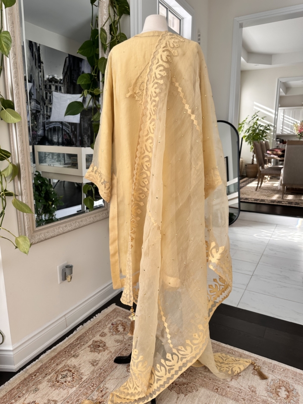 - Dry clean only to maintain the fabric’s delicacy and preserve the handwork.