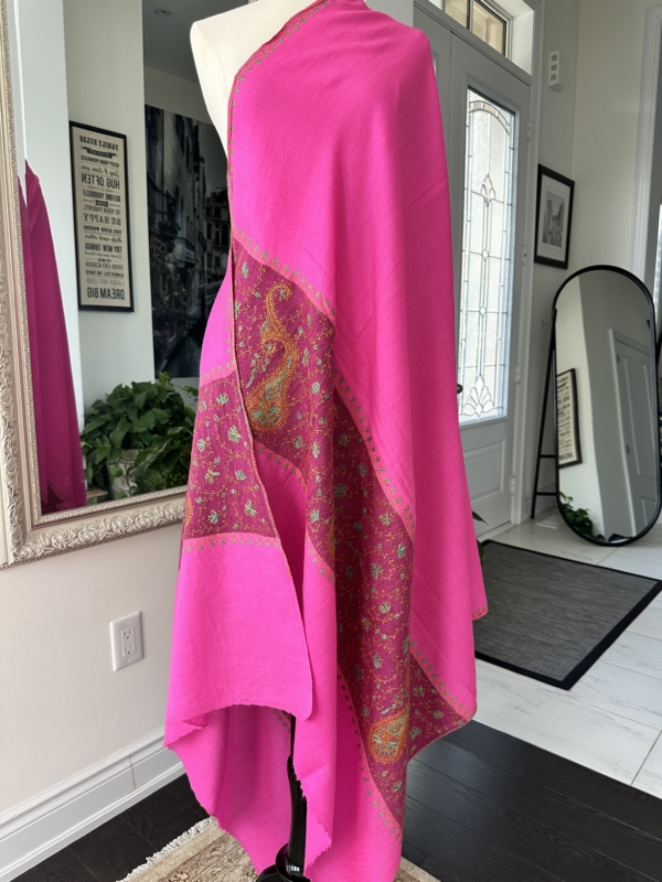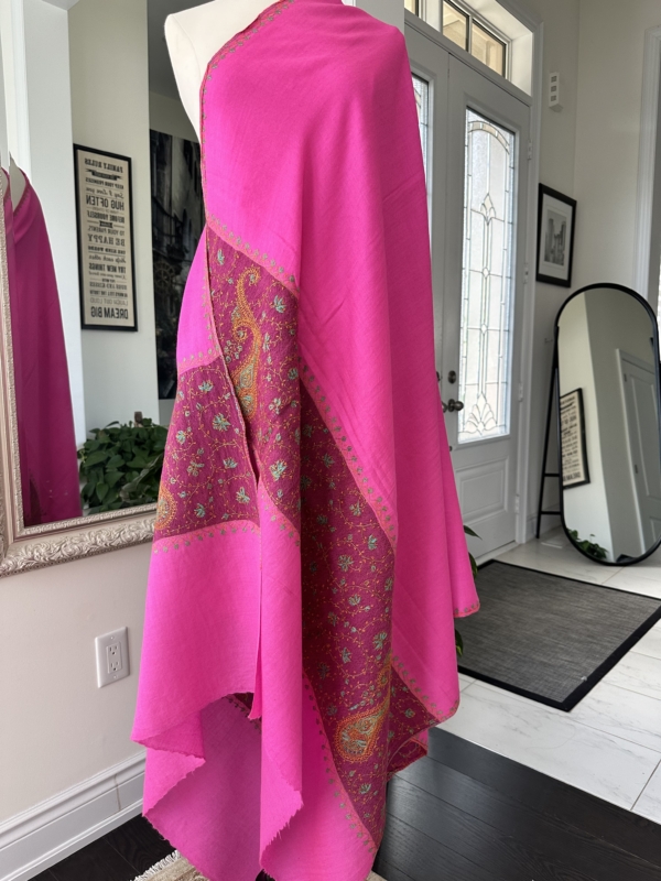 100% Hand-Embroidered Kashmiri Toosha Pashmina Shawl. Immerse yourself in the luxurious warmth and exquisite craftsmanship of this masterpiece. Painstakingly embroidered by skilled artisans, every intricate detail tells a tale of dedication and precision. Made from the finest Pashmina wool, this shawl embodies timeless elegance and sophistication. A perfect blend of heritage and luxury, it is a wearable work of art that adds a touch of opulence to any ensemble. Wrap yourself in the unmatched beauty and comfort of this handcrafted Kashmiri Toosh Pashmina Shawl.