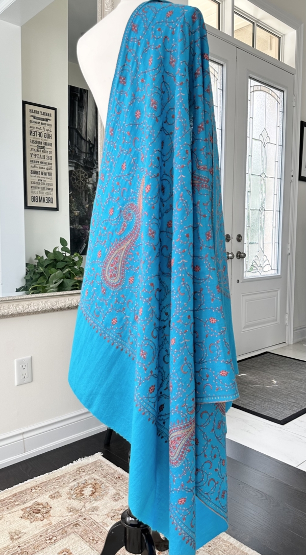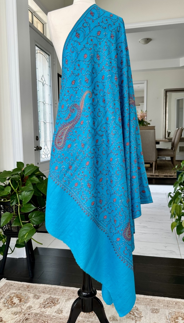 100% Hand-Embroidered Kashmiri Toosha Pashmina Shawl. Immerse yourself in the luxurious warmth and exquisite craftsmanship of this masterpiece. Painstakingly embroidered by skilled artisans, every intricate detail tells a tale of dedication and precision. Made from the finest Pashmina wool, this shawl embodies timeless elegance and sophistication. A perfect blend of heritage and luxury, it is a wearable work of art that adds a touch of opulence to any ensemble. Wrap yourself in the unmatched beauty and comfort of this handcrafted Kashmiri Toosh Pashmina Shawl.