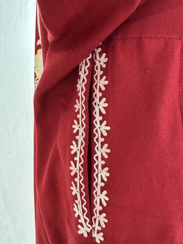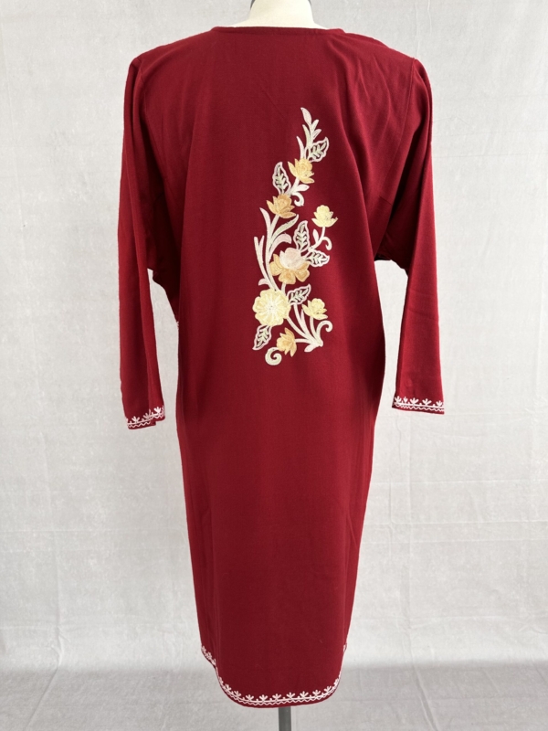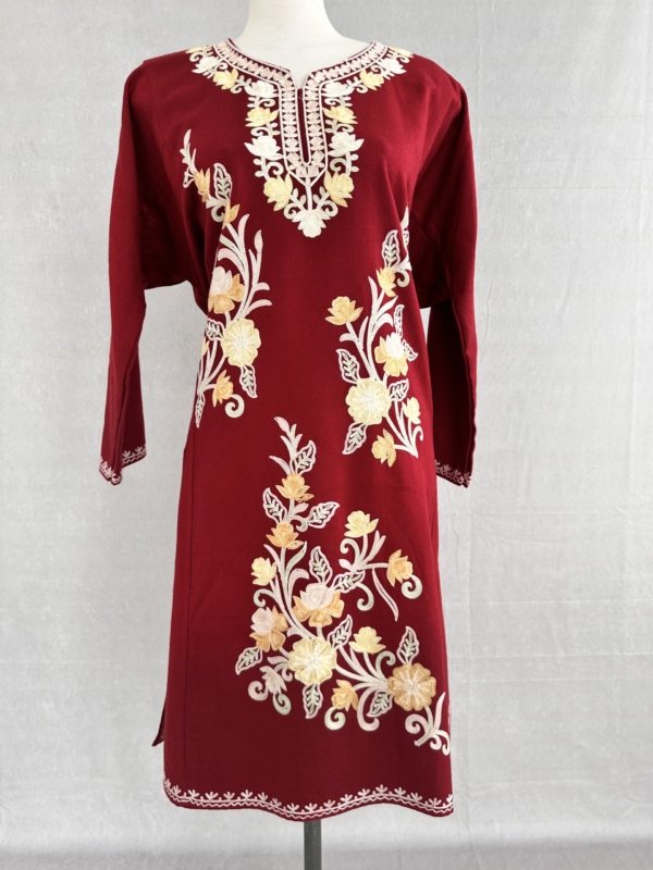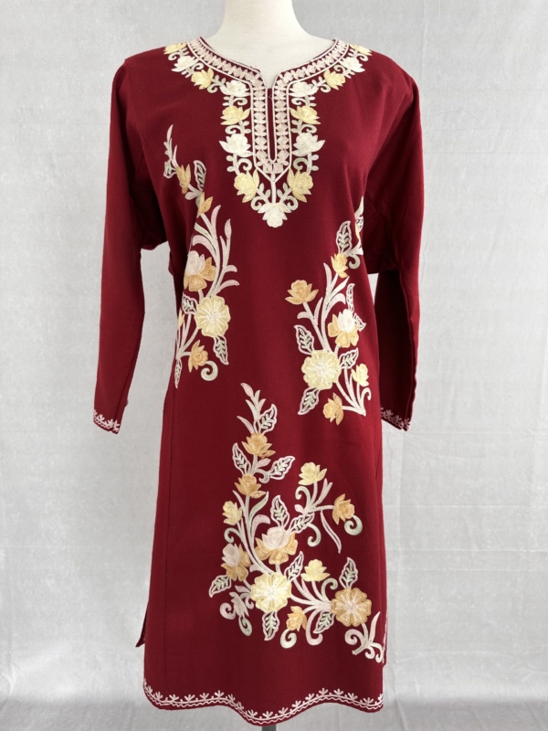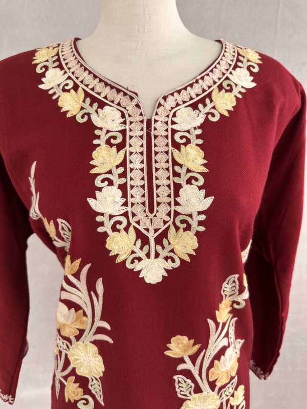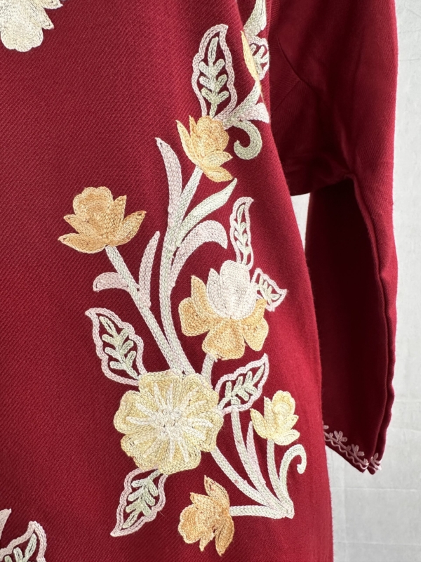 Elevate your winter wardrobe with our traditional Kashmiri Pheran crafted from a mix of wool fabrics, complete with two side pockets and delicate Ari work embroidery. Inspired by centuries of Kashmiri tradition, these Pherans offer both warmth and elegance, perfect for cold weather outings. The intricate till work embroidery adds a touch of sophistication to this timeless garment, making it a must-have for any discerning fashion enthusiast. Stay cozy and stylish with our Kashmiri Pheran, blending tradition with modern flair