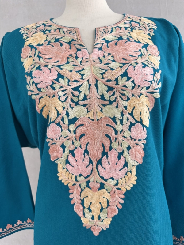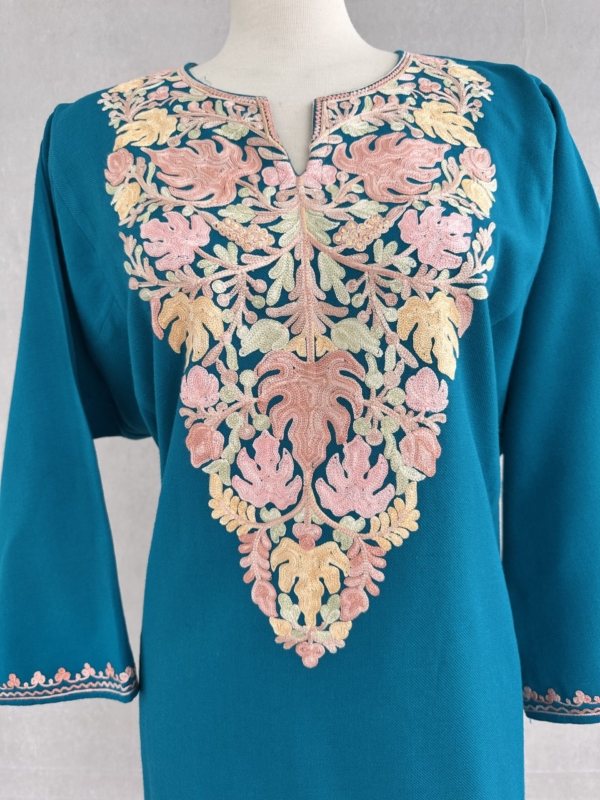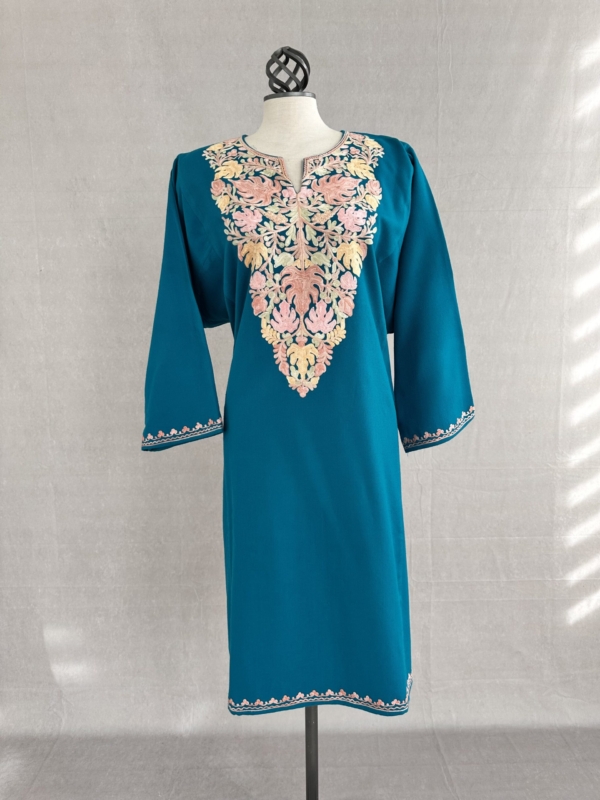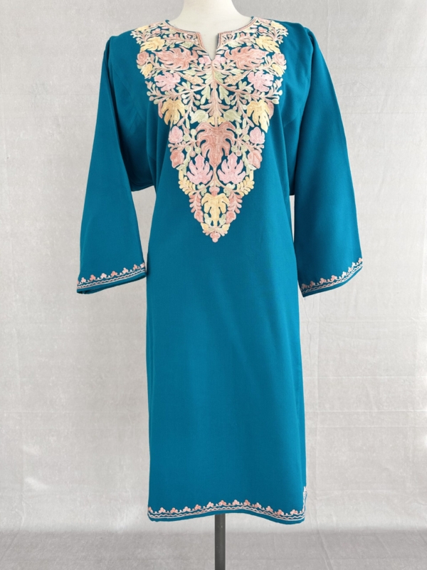 Elevate your winter wardrobe with our traditional Kashmiri Pheran crafted from a mix of wool fabrics, complete with two side pockets and delicate Ari work embroidery. Inspired by centuries of Kashmiri tradition, these Pherans offer both warmth and elegance, perfect for cold weather outings. The intricate till work embroidery adds a touch of sophistication to this timeless garment, making it a must-have for any discerning fashion enthusiast. Stay cozy and stylish with our Kashmiri Pheran, blending tradition with modern flair