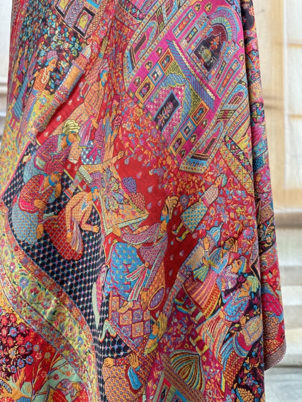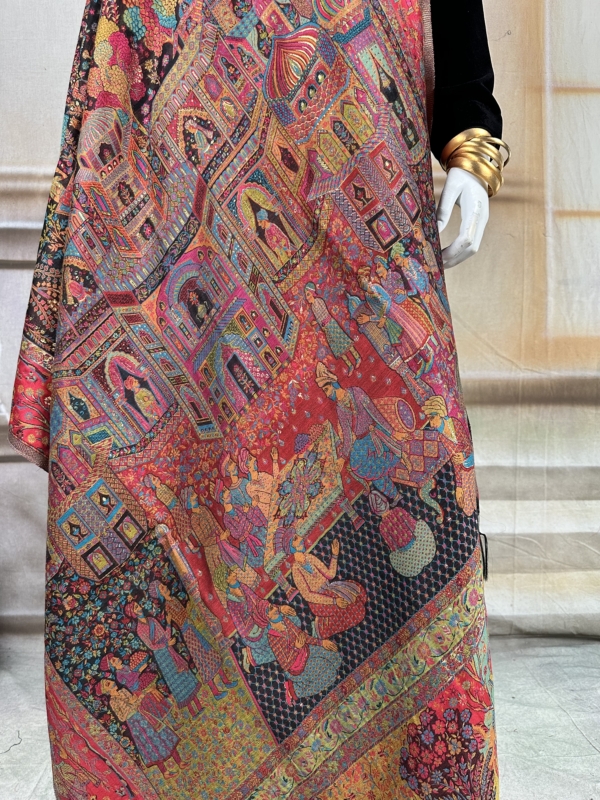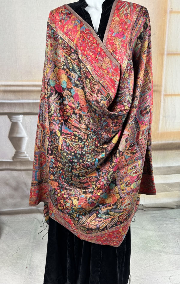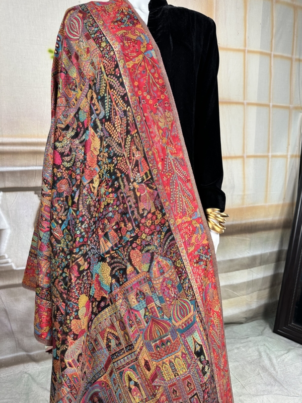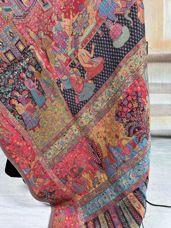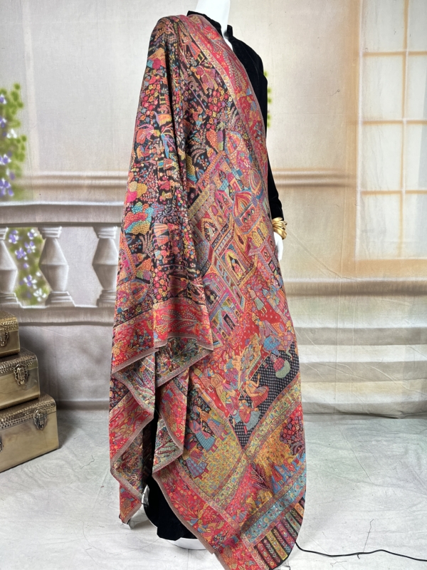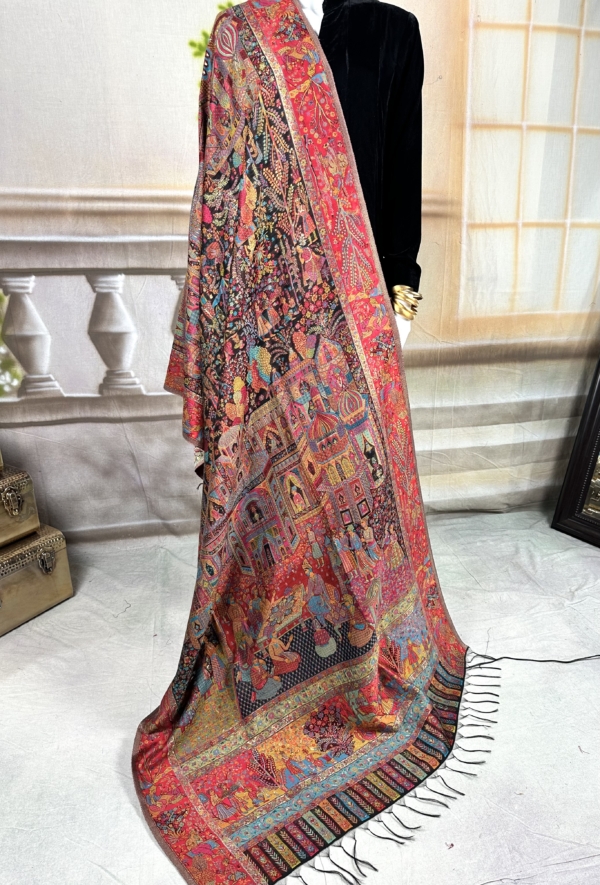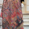 The Kani silk shawl is a testament to timeless elegance. Crafted with the finest silk, this accessory boasts the intricate Kani weaving technique, featuring delicate floral patterns and vibrant hues. Lightweight yet warm, it drapes gracefully, making it a luxurious addition to any ensemble. The traditional craftsmanship and rich texture of the Kani silk shawl exude a touch of regality, making it a perfect blend of cultural heritage and contemporary style.