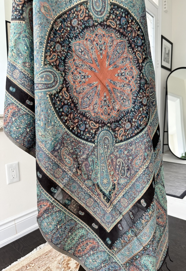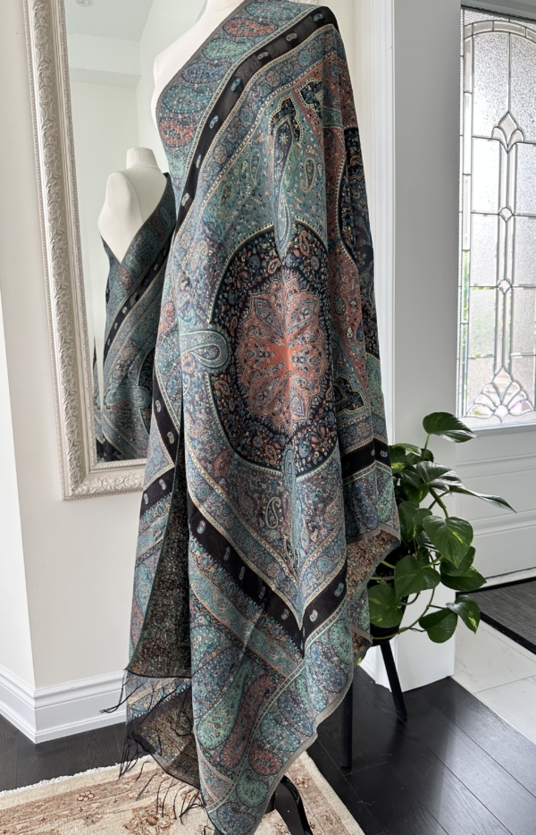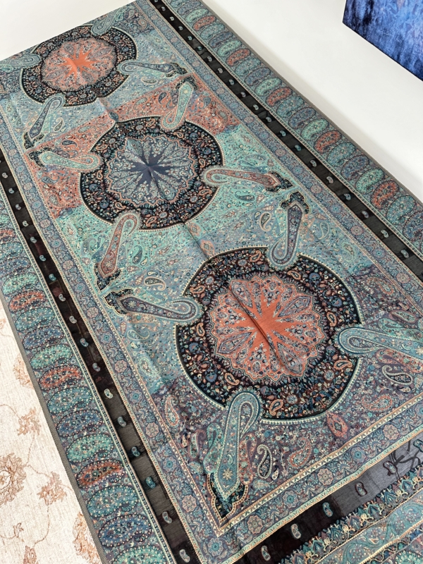 The Kani silk shawl is a testament to timeless elegance. Crafted with the finest silk, this accessory boasts the intricate Kani weaving technique, featuring delicate floral patterns and vibrant hues. Lightweight yet warm, it drapes gracefully, making it a luxurious addition to any ensemble. The traditional craftsmanship and rich texture of the Kani silk shawl exude a touch of regality, making it a perfect blend of cultural heritage and contemporary style.