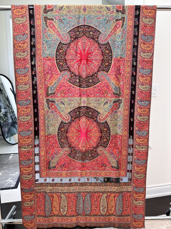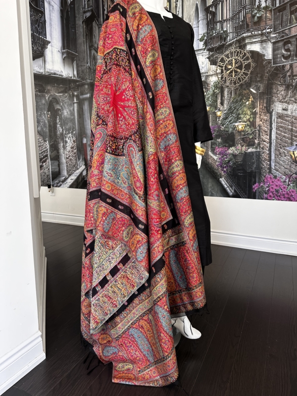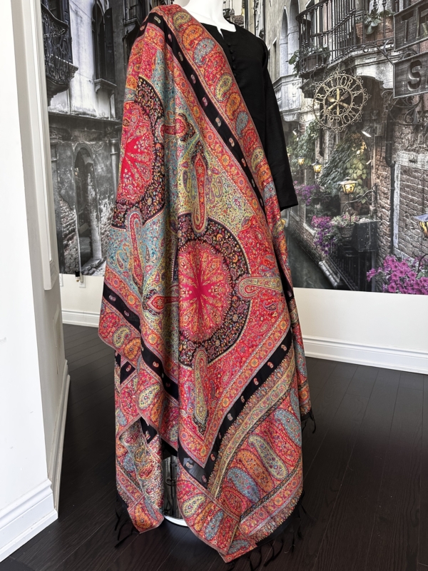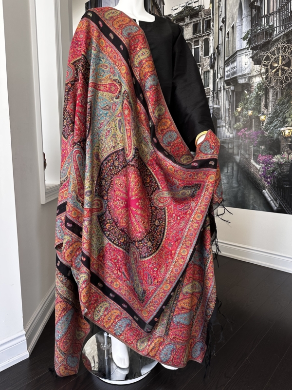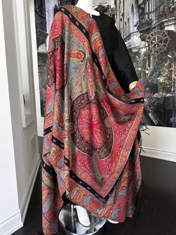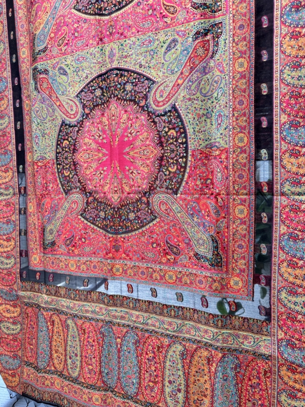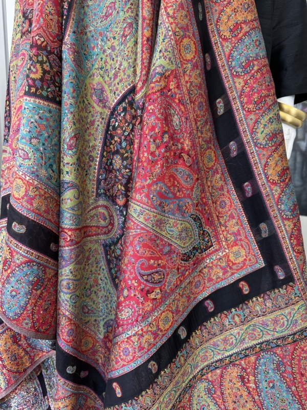 The Kani silk shawl is a testament to timeless elegance. Crafted with the finest silk, this accessory boasts the intricate Kani weaving technique, featuring delicate floral patterns and vibrant hues. Lightweight yet warm, it drapes gracefully, making it a luxurious addition to any ensemble. The traditional craftsmanship and rich texture of the Kani silk shawl exude a touch of regality, making it a perfect blend of cultural heritage and contemporary style.