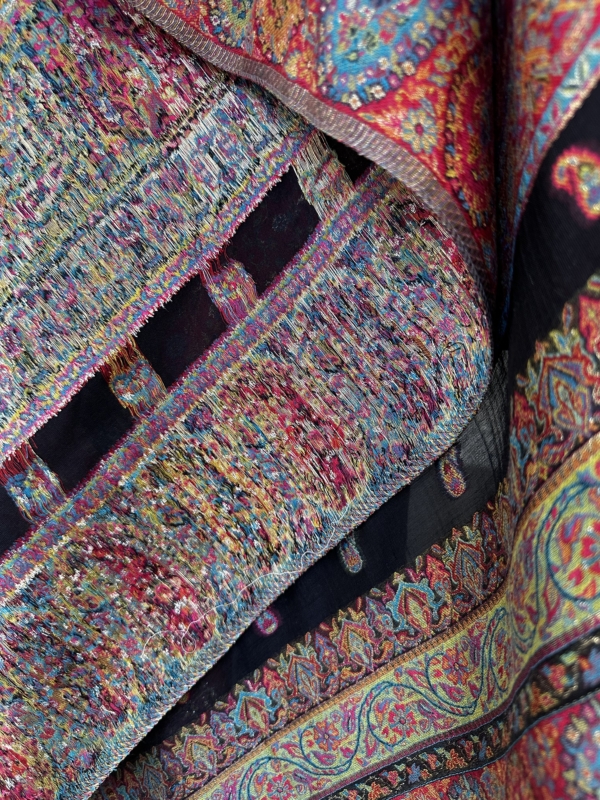 Elevate your style with a Kani silk Jamawar shawl, where timeless craftsmanship meets luxury. Intricate zari weaving adds a touch of opulence, making it a statement accessory that seamlessly blends tradition and sophistication.