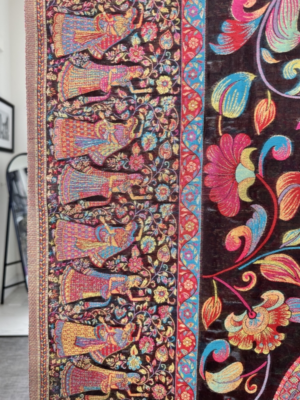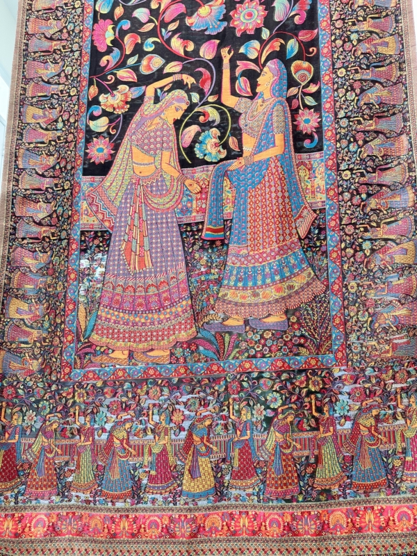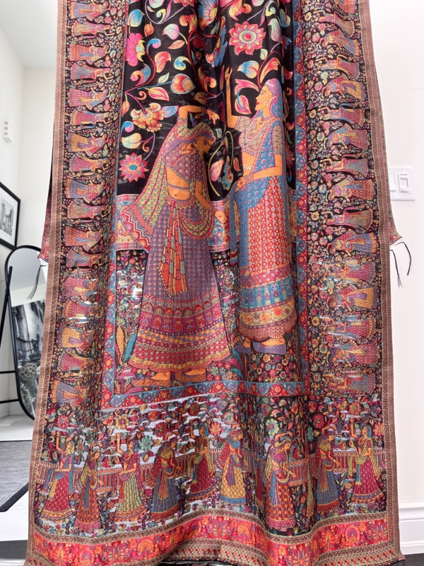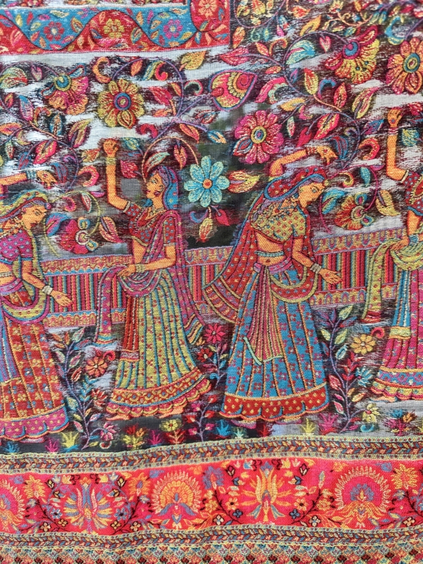 The Kani silk shawl is a testament to timeless elegance. Crafted with the finest silk, this accessory boasts the intricate Kani weaving technique, featuring delicate floral patterns and vibrant hues. Lightweight yet warm, it drapes gracefully, making it a luxurious addition to any ensemble. The traditional craftsmanship and rich texture of the Kani silk shawl exude a touch of regality, making it a perfect blend of cultural heritage and contemporary style.