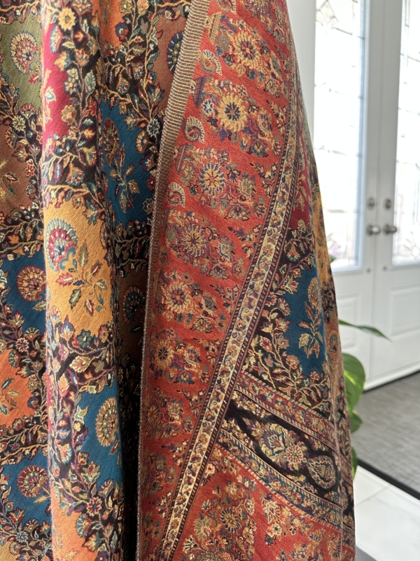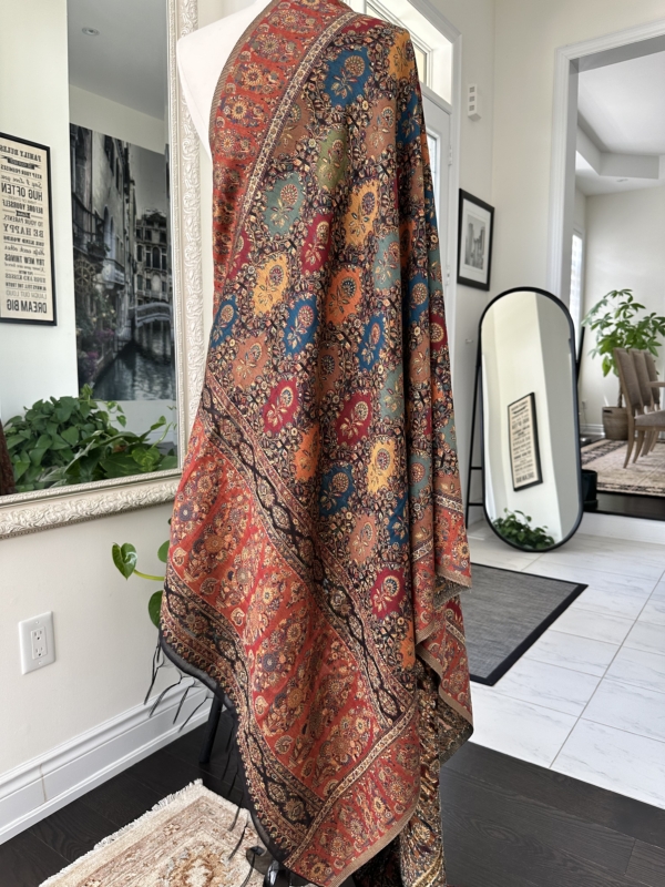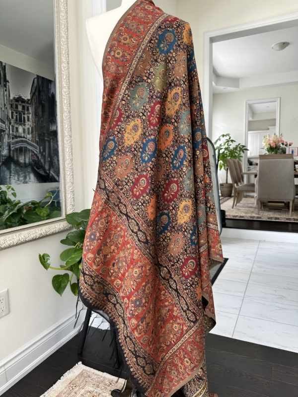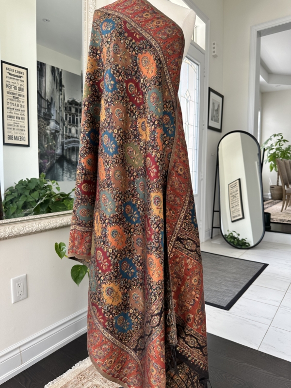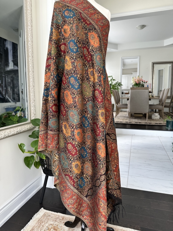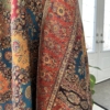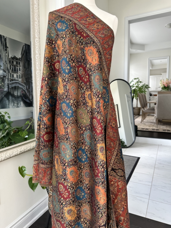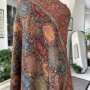 The Kani silk shawl is a testament to timeless elegance. Crafted with the finest silk, this accessory boasts the intricate Kani weaving technique, featuring delicate floral patterns and vibrant hues. Lightweight yet warm, it drapes gracefully, making it a luxurious addition to any ensemble. The traditional craftsmanship and rich texture of the Kani silk shawl exude a touch of regality, making it a perfect blend of cultural heritage and contemporary style.